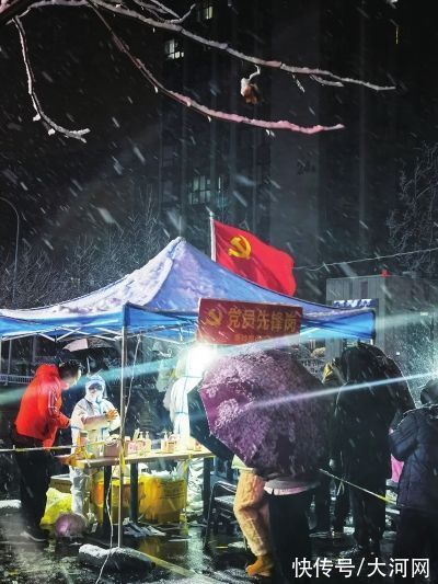 医护人员顶风冒雪为群众做核酸检测